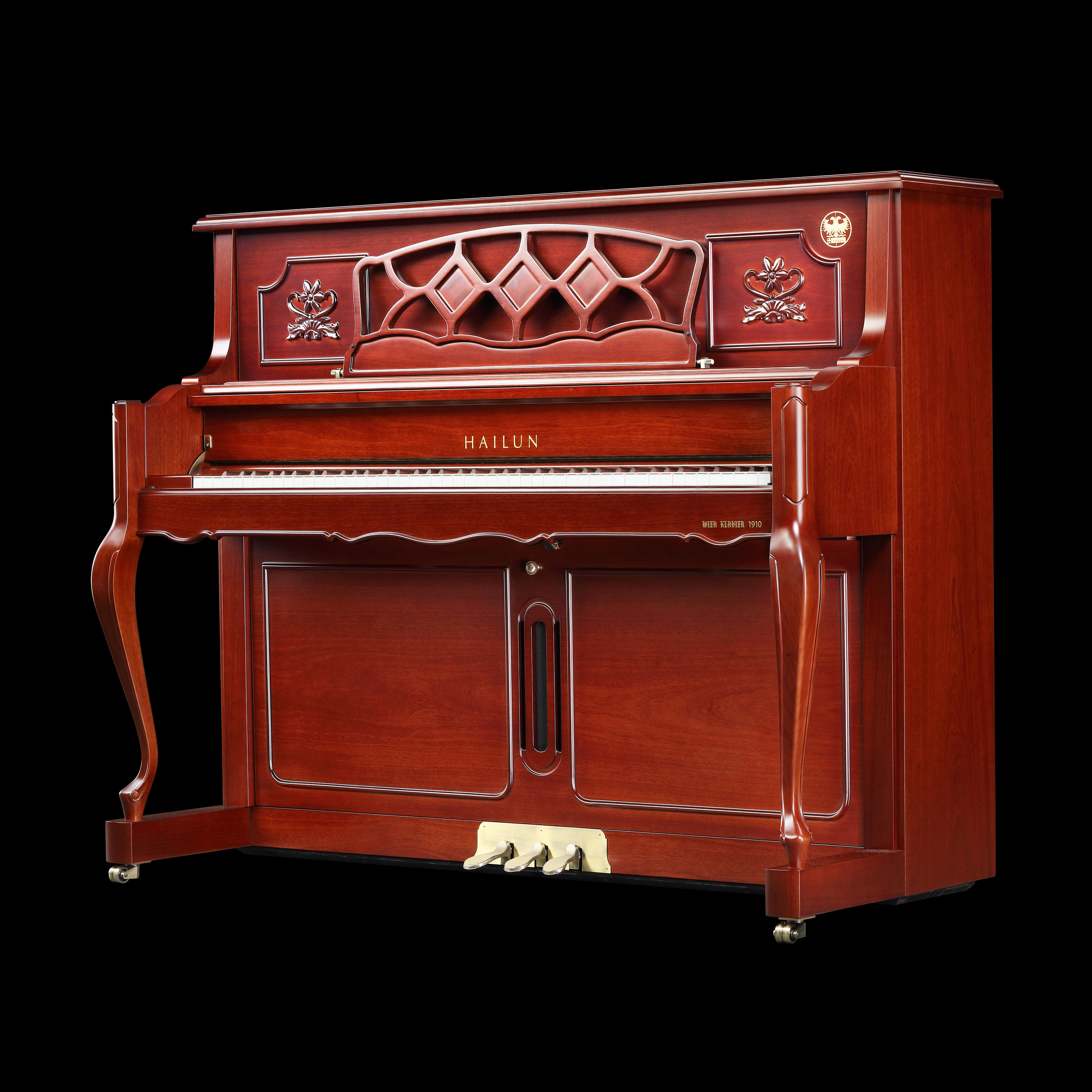 強力歐式矩形鐵板,高精度真空鑄造而成,鐵板呈矩形框架結構,確保音源弦列堅固穩定,孔位精確,布局合理。歐式雕花鑄造鐵板工藝,更具美感。