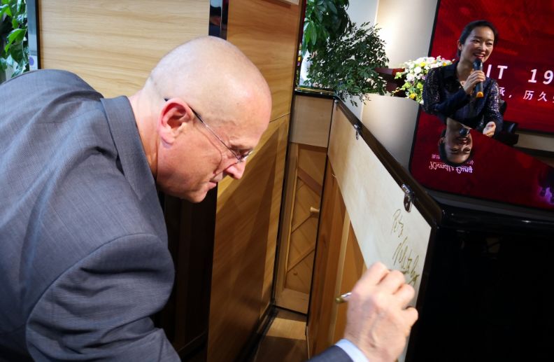 為了歡迎這位文德隆品牌傳承人的到來(lái),交流會(huì)還特別安排了節(jié)目表演。重慶當(dāng)?shù)氐膬?yōu)秀鋼琴教師使用文德隆三角鋼琴為大家獻(xiàn)上了精彩演奏,活潑歡快的曲調(diào)讓大家和彼德·維萊茨基喜笑顏開(kāi)。